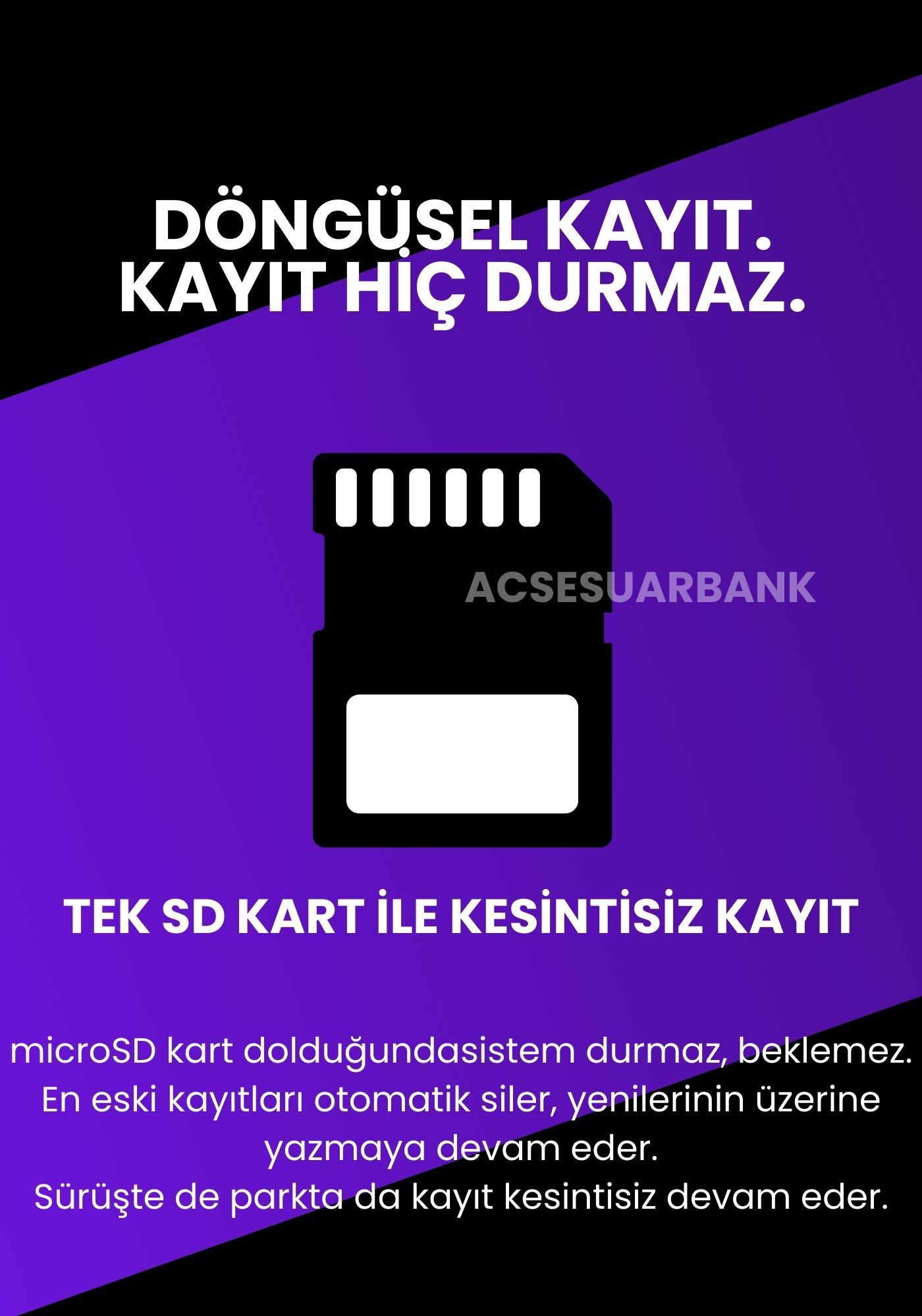 G-Sensör; ani çarpma, kaza veya darbe anlarını algılar ve görüntüleri otomatik olarak kilitleyerek kayıt altına alır.