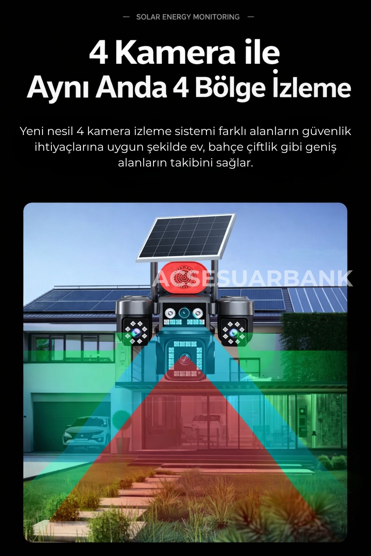 • 4 KAMERALI KAMERA SİSTEMİ • SİM KART DESTEĞİ • GÜNEŞ ENERJİLİ • TELEFONDAN UZAKTAN İZLEME • • 4 KAMERALI KAMERA SİSTEMİ • SİM KART DESTEĞİ • GÜNEŞ ENERJİLİ • TELEFONDAN UZAKTAN İZLEME •