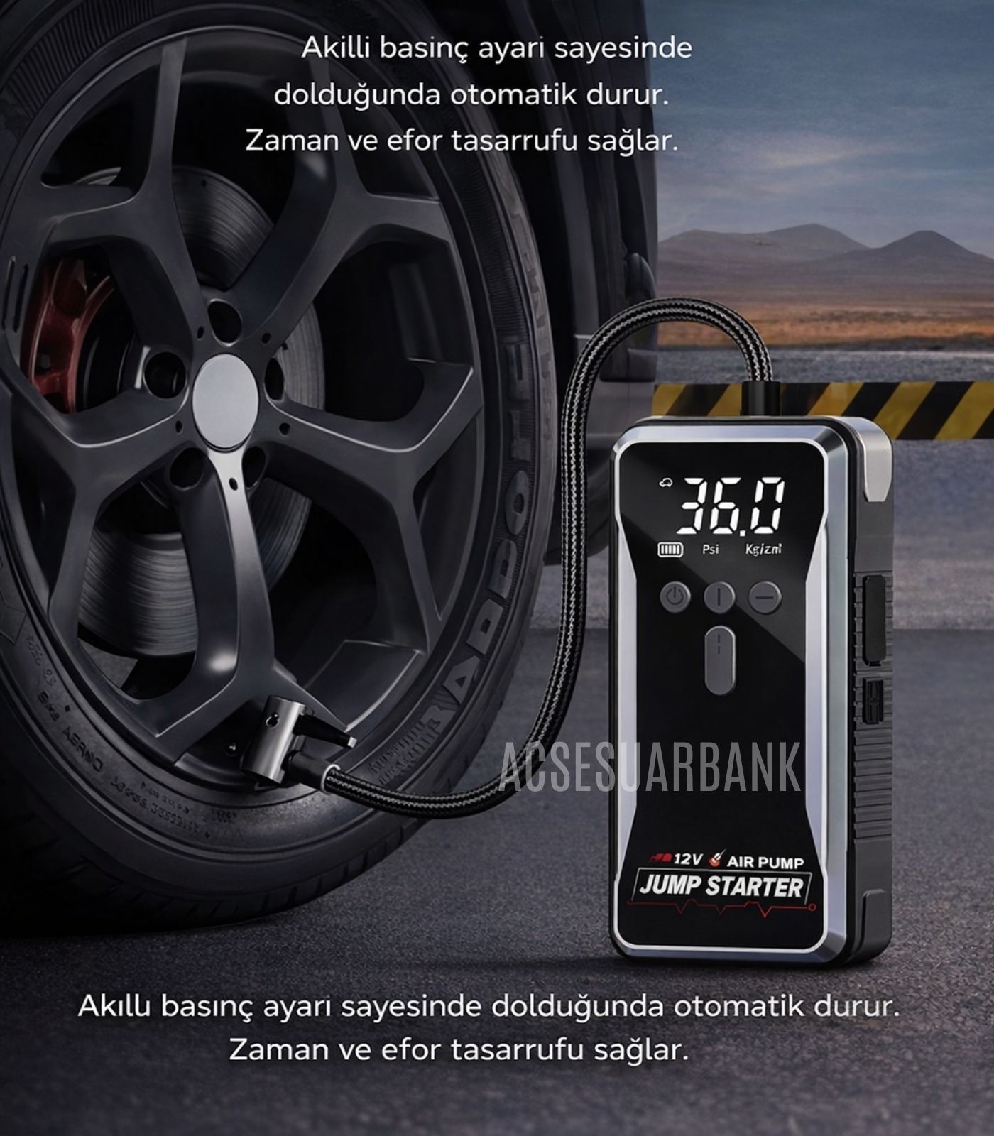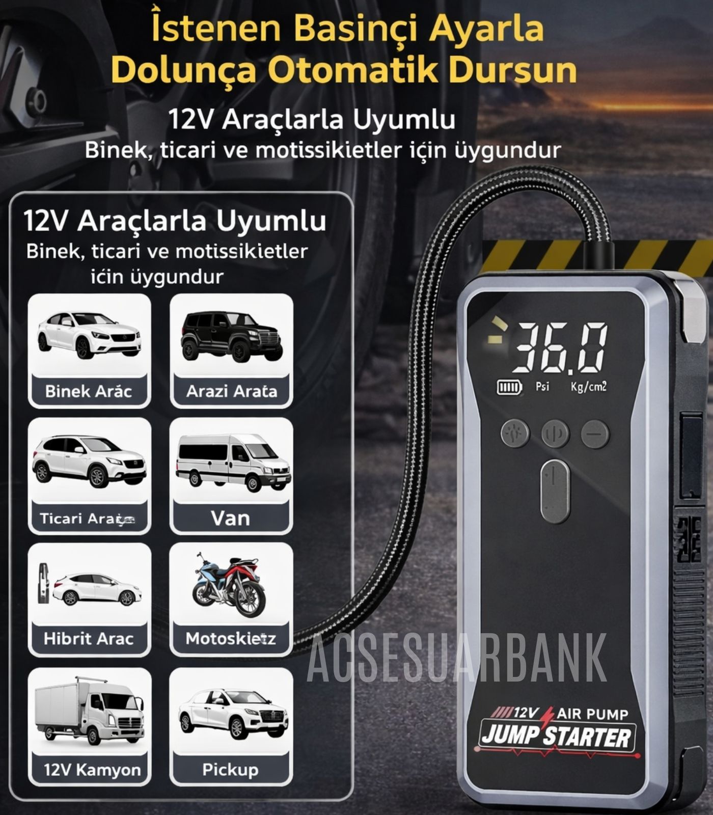 Evet. Dahili hava pompası, araç lastiği, motosiklet lastiği ve bisiklet lastiği şişirmek için uygundur. Maksimum 150 PSI basınç sağlar.