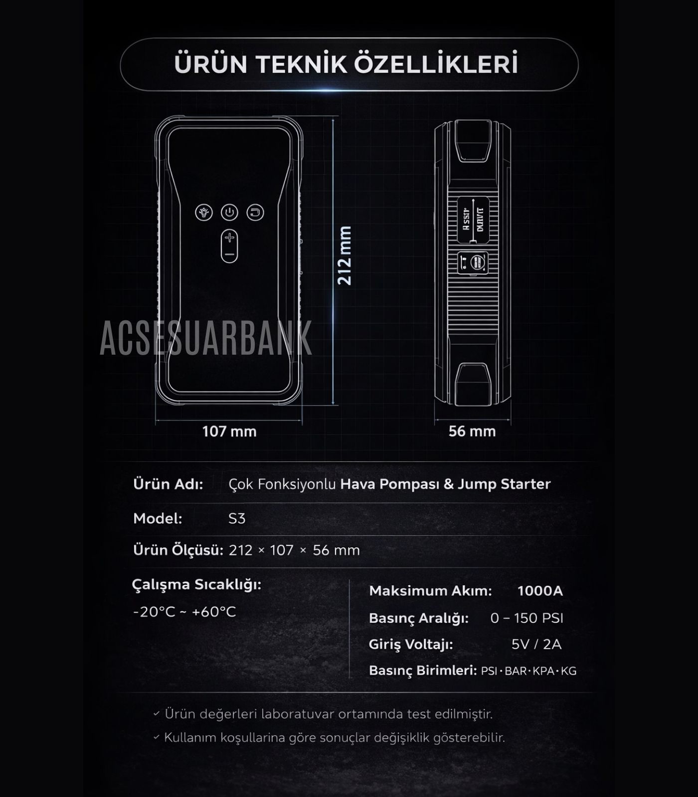Evet. 1000A tepe akımı sayesinde aküsü zayıflamış veya bitmiş araçlarda akü takviyesi yapabilir.