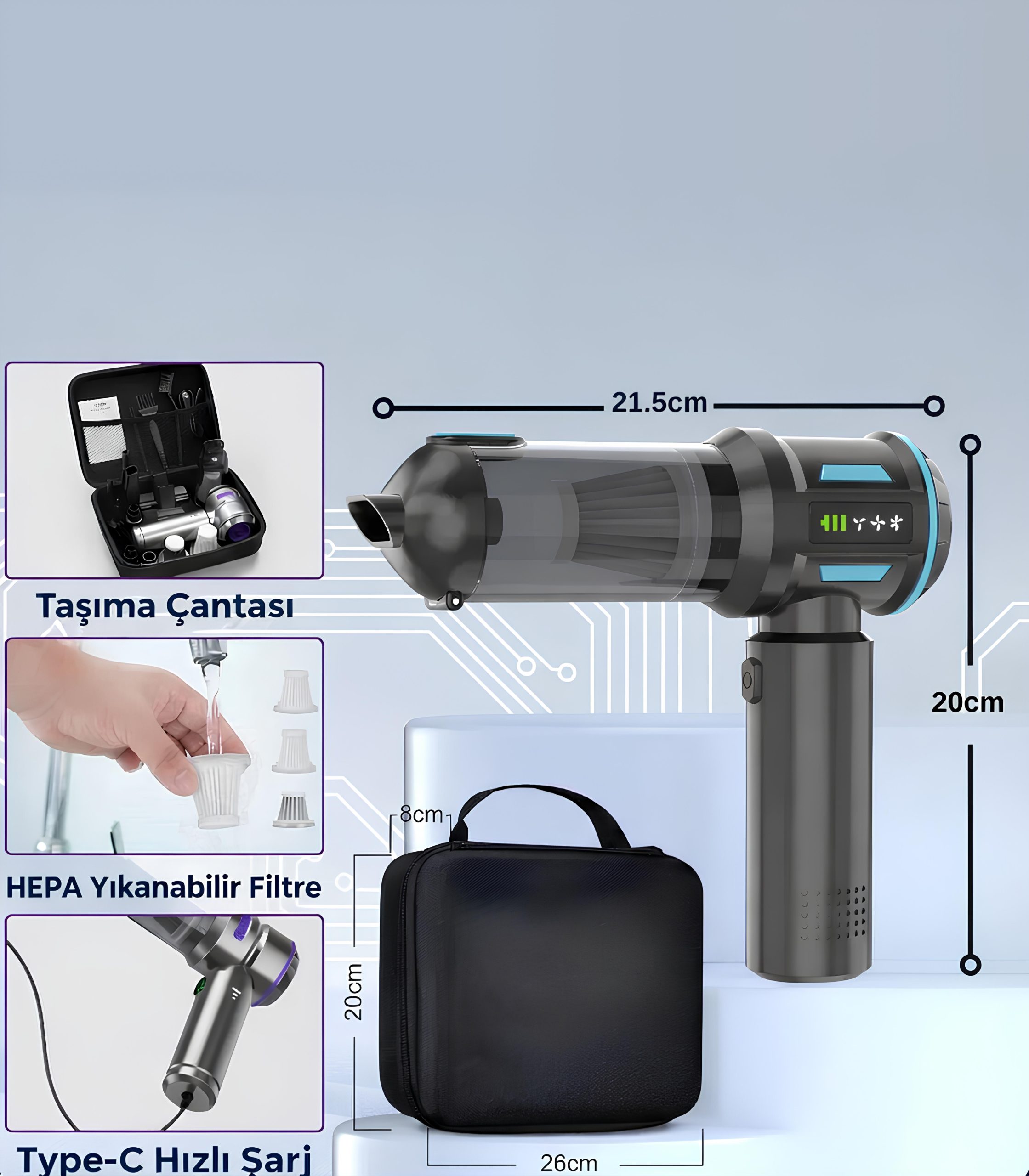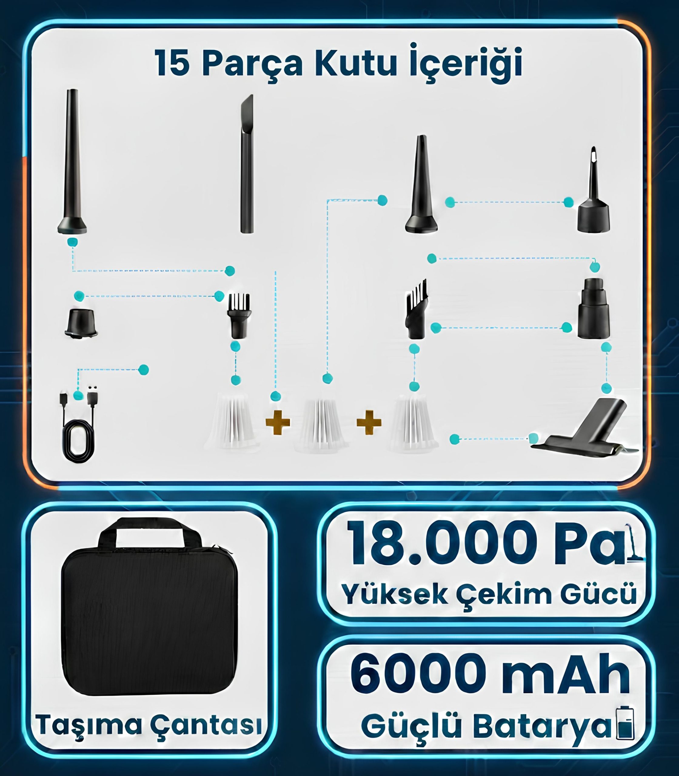 Araç İçi Süpürge 18.000 Pa Güçlü Emiş