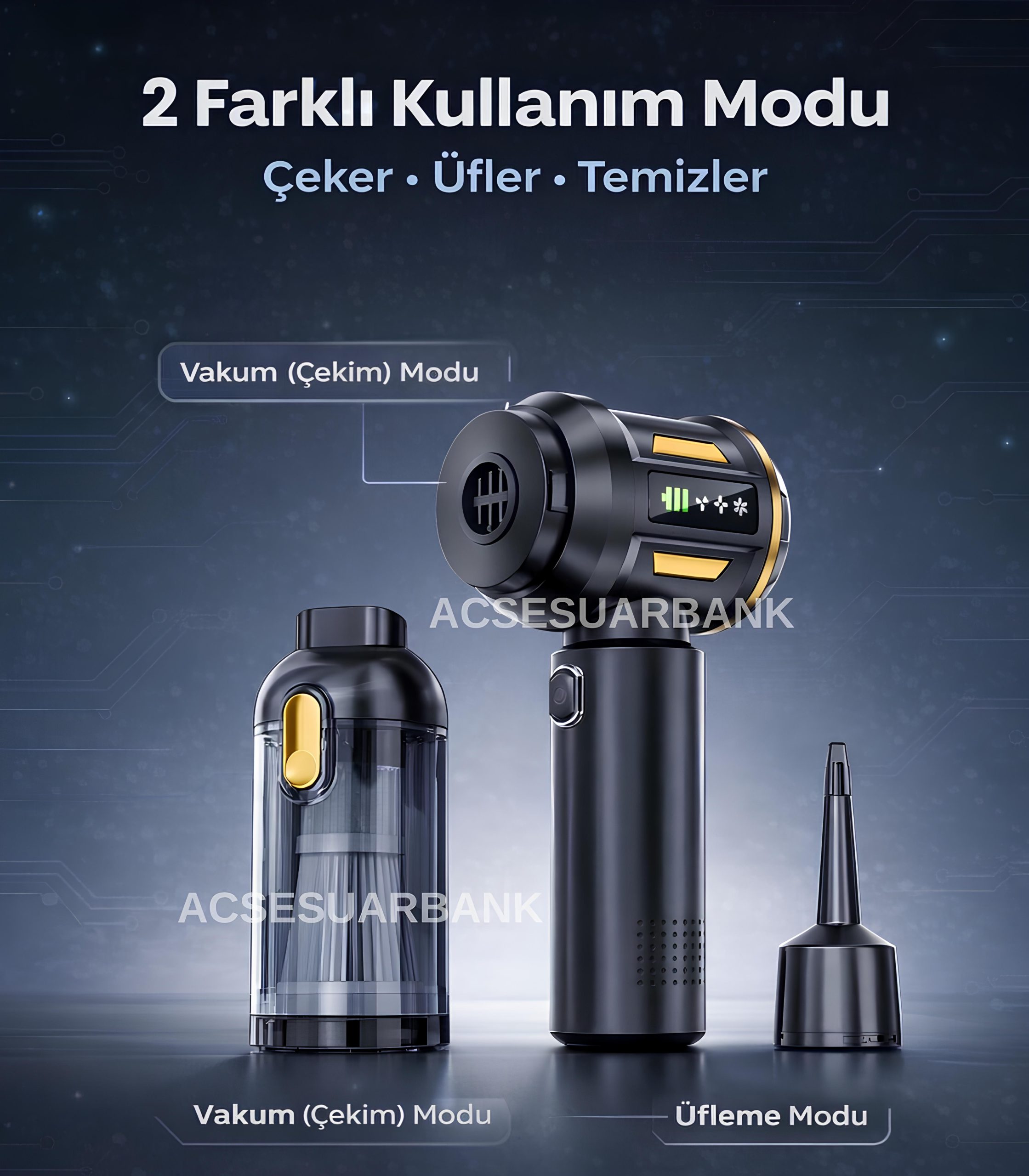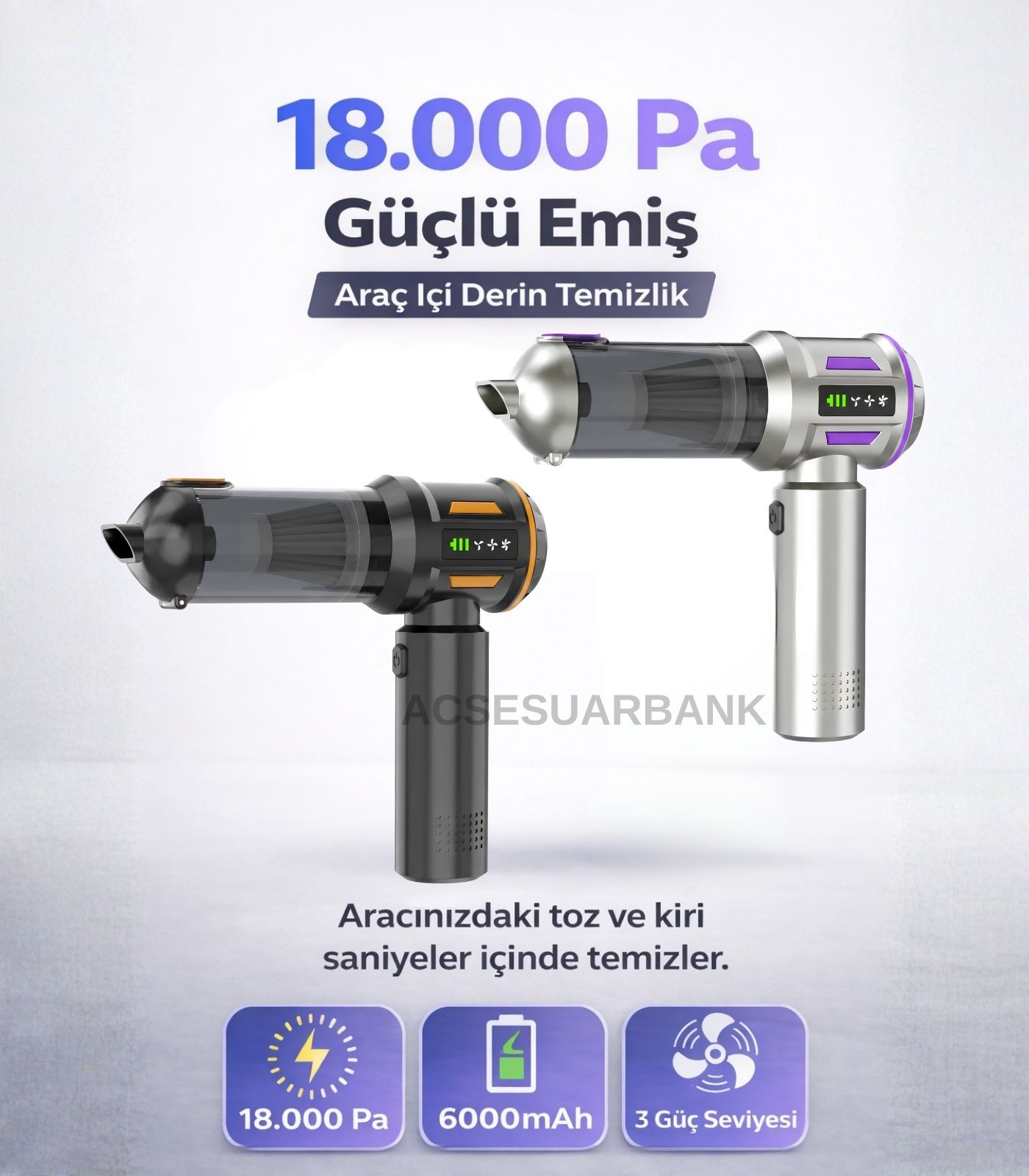 • 18.000 PA • YÜKSEK EMİŞ GÜCÜ • 6.000 mAh • TAŞINABİLİR • TYPE-C • • 18.000 PA • YÜKSEK EMİŞ GÜCÜ • 6.000 mAh • TAŞINABİLİR • TYPE-C •