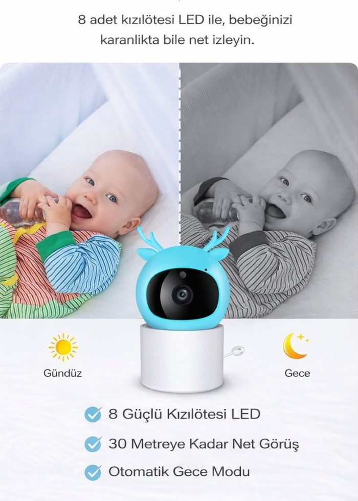 Bebek İzleme Kamerası Monitör – Gece Görüş, Anlık Ses & Görüntü Takibi