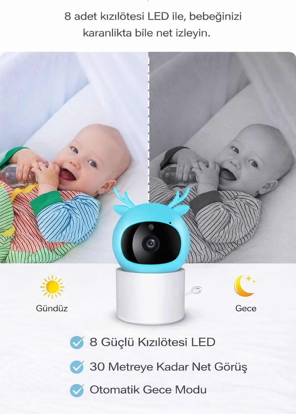 Evet, çift yönlü ses özelliği sayesinde uzaktan konuşarak bebeğinizi sakinleştirebilirsiniz.