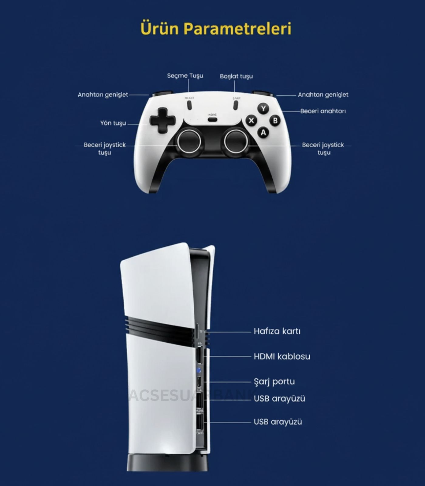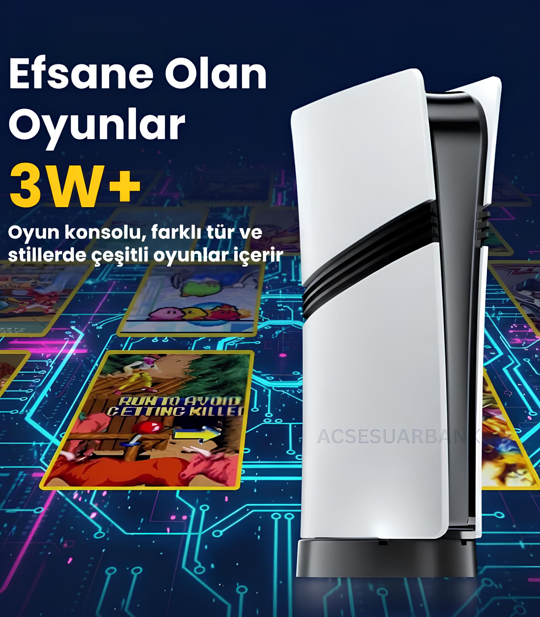 GS5 Pro Kablosuz Çift Kol Oyun Konsolu, 4K HDMI görüntü desteği, 53 emülatör ve 30.000’den fazla hazır oyun ile nostaljiyi modern teknolojiyle birleştirir.