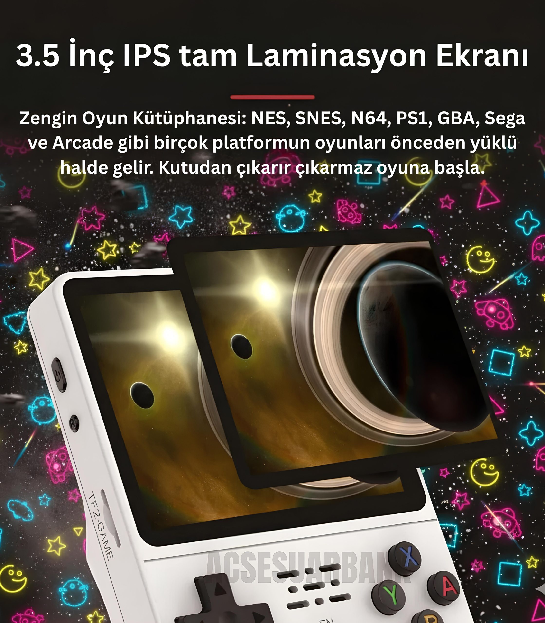 - Güçlü Donanım: RK3326 64-bit dört çekirdekli işlemci ve Mali-G31MP2 grafik birimi sayesinde klasik oyunlarda akıcı performans sağlar.